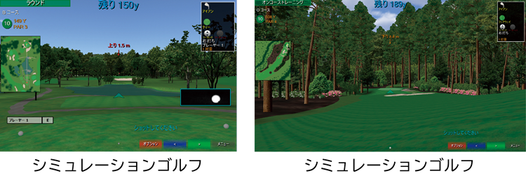 屋外練習場でシミュレーションゴルフのラウンドプレイが可能です。