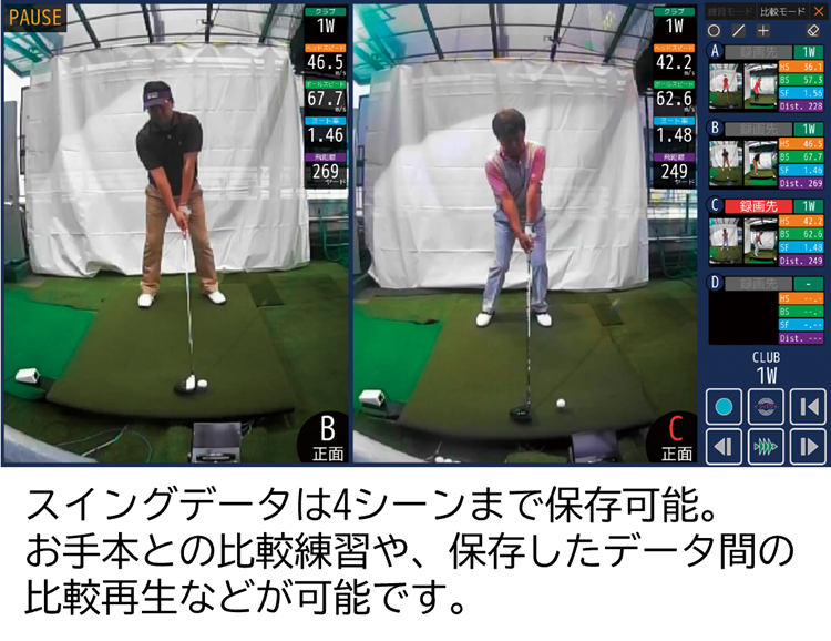 高画質の高速シャッターカメラを使用しており、動きの速いクラブヘッドやシャフトの動きも良く確認できます。